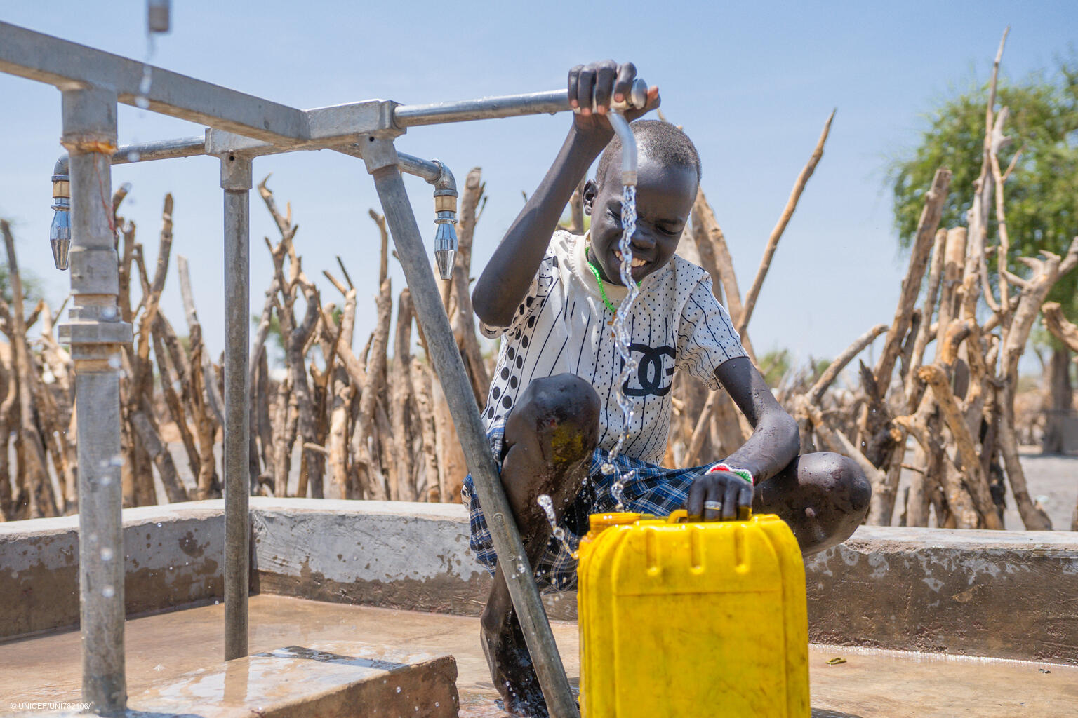 Sør-Sudan er et av de 100 landene der UNICEF jobber for å sikre tilgang til rent drikkevann, bygge sanitæranlegg, og fremme grunnleggende hygienpraksis. Gjennom WASH jobber UNICEF målrettet for å forbedre forholdene, blant annet på landets skoler.