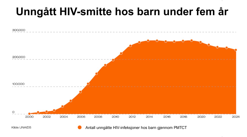 Det har skjedd mye siden år 2000, da det ble født over en halv million barn med hiv globalt. I dag er det rundt 120 000 – en nedgang på hele 78 prosent. De siste 25 årene har det altså kommet markant færre barn til verden med viruset.
