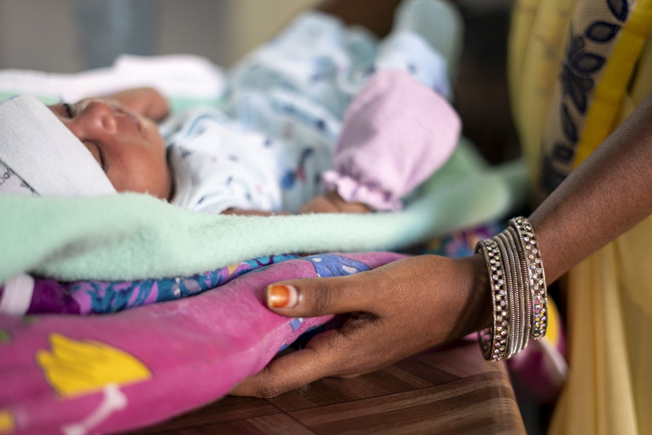 Sonali er hiv-positiv og har sitt 3 uker gamle spedbarn med på helsesenteret i Kondapalli i India. Foto: UNICEF/Muthuramalingam